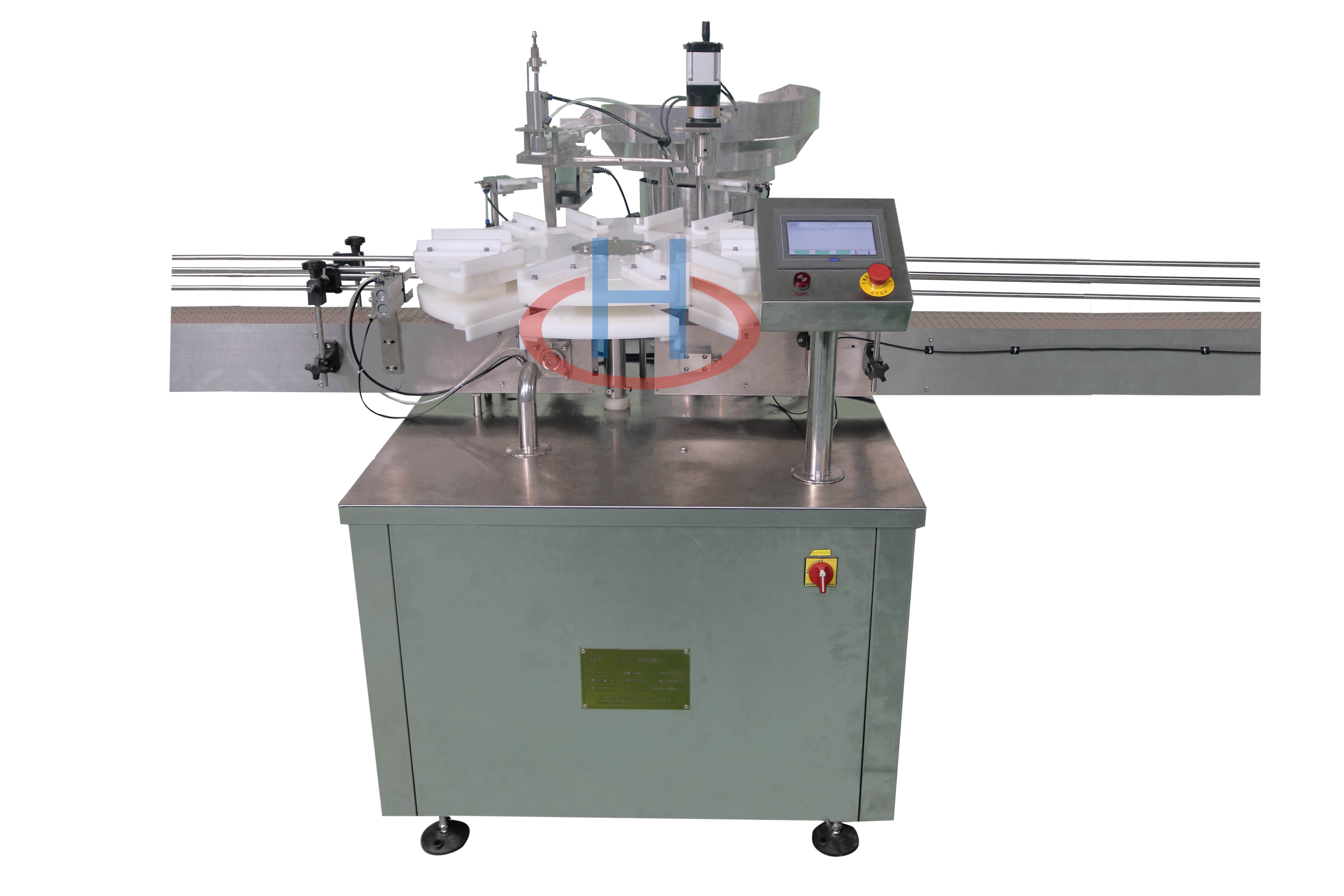 本机适用于各种口服液及糖浆液体的灌装、压塞及旋(轧)盖,广泛用于食品、制药、化工行业及科研领域。符合GMP要求。