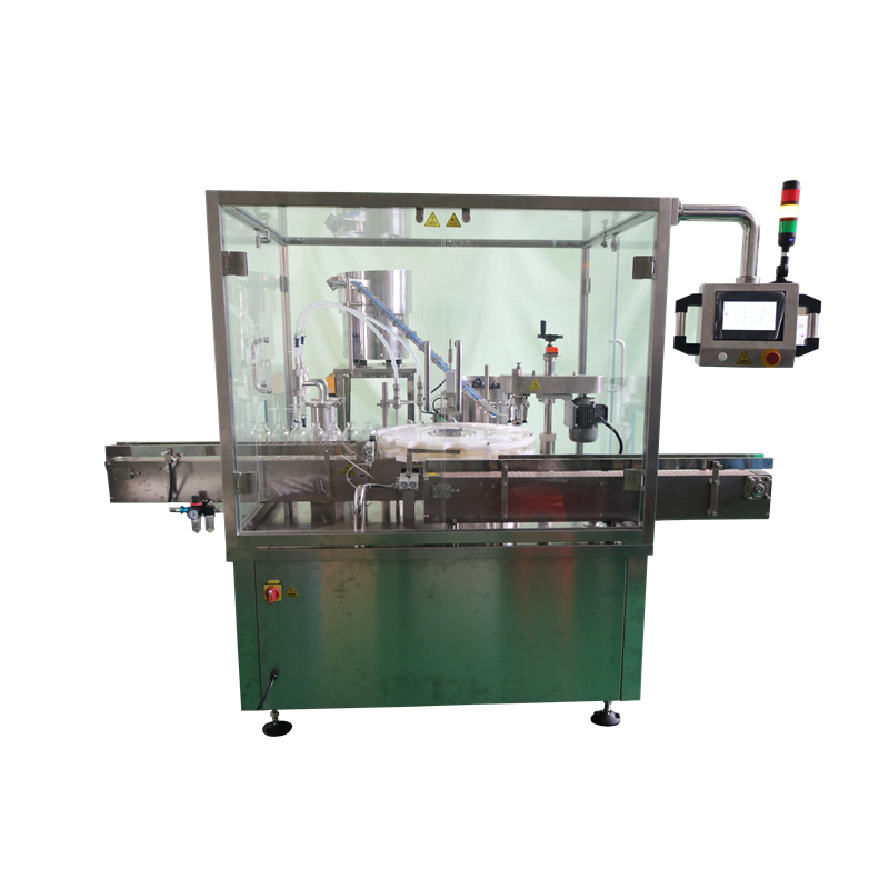 本设备适用于大剂量液体灌装机,如大输液灌装、西林瓶灌装,采用直线式或圆盘式灌装、加塞、轧盖, 灌装精度高,运行稳定,封口牢固、美观等,广泛适用于食品、制药、化工行业及科研领域。符合GMP要求。