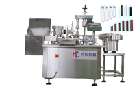 • 标配定量试剂灌装机 工作流程:该机通过人工或设备自动把包材送到主机卡位上,然后光标检测定量灌装,充填后会定位进行上盖、下盖,再进行旋盖。